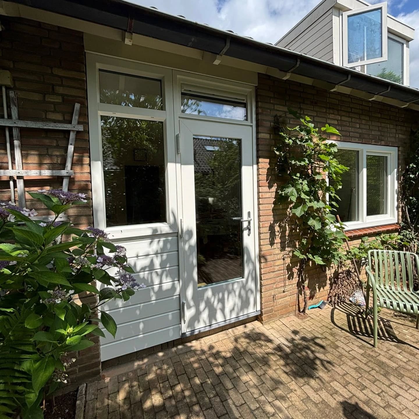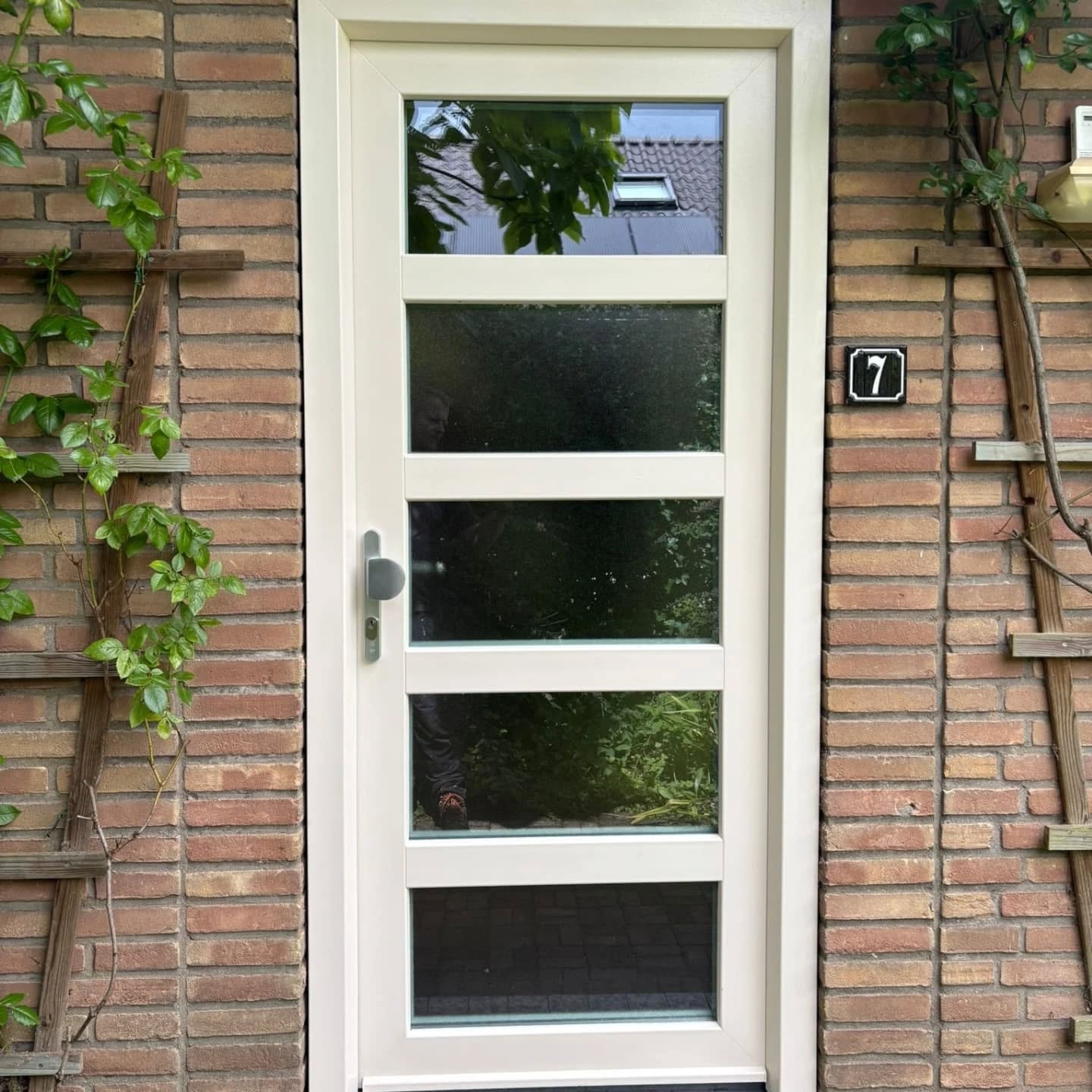 De nieuwe kunststof deuren passen perfect bij de stijl van de woning. Dankzij het strakke ontwerp en het gebruik van glas hebben de deuren een moderne uitstraling, terwijl ze tegelijk voor extra veiligheid zorgen. De stevige constructie en meerpuntssluitingen bieden optimale bescherming en duurzaamheid.